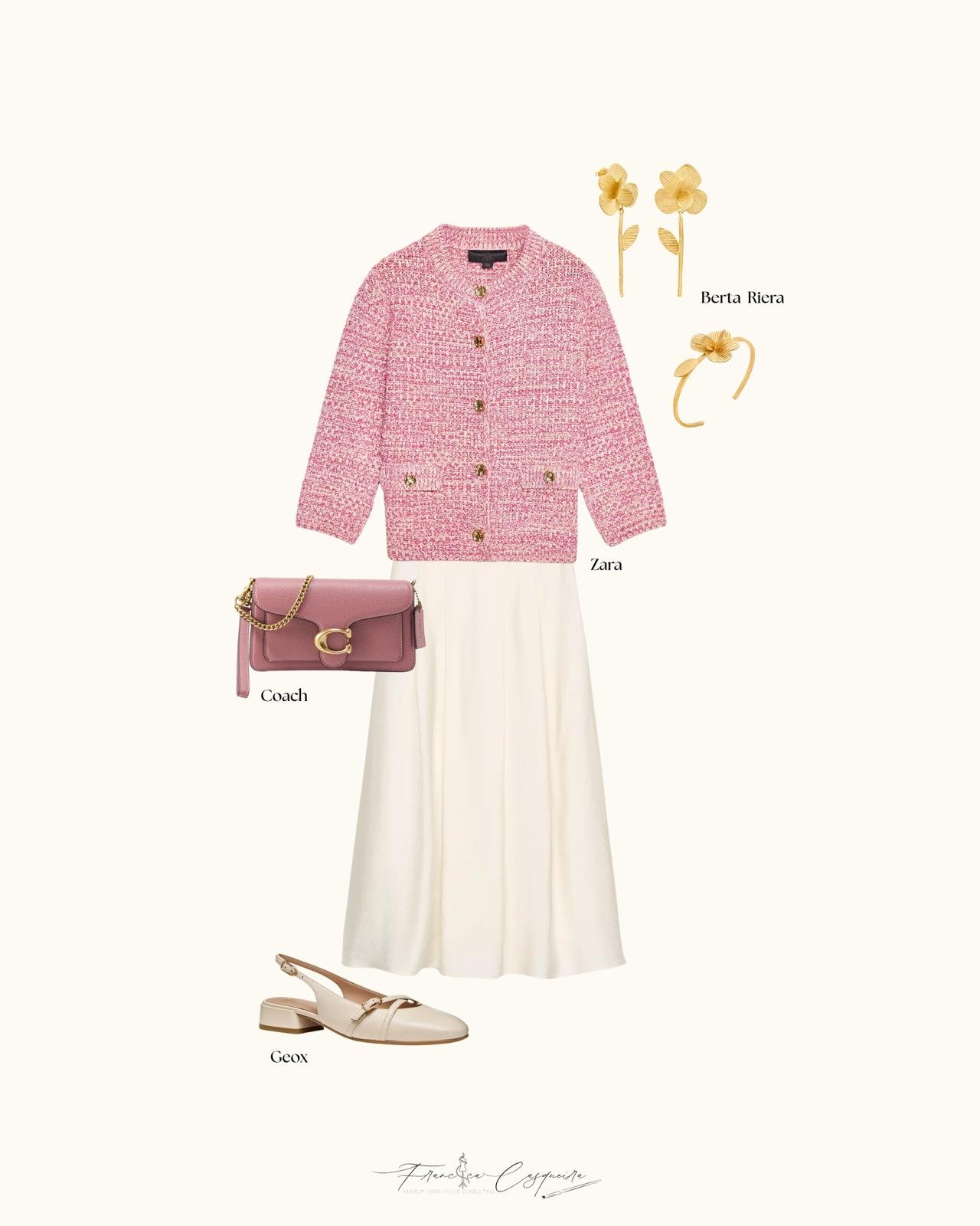 ⁃ Os tons neutros e terrosos não poderiam faltar, seja para looks monocromáticos ou para servirem de base para fazer as cores que falei anteriormente, terem destaque. O branco, o bege e o castanho, com algumas variações de temperatura, continuam a ser escolhas muito acertadas.